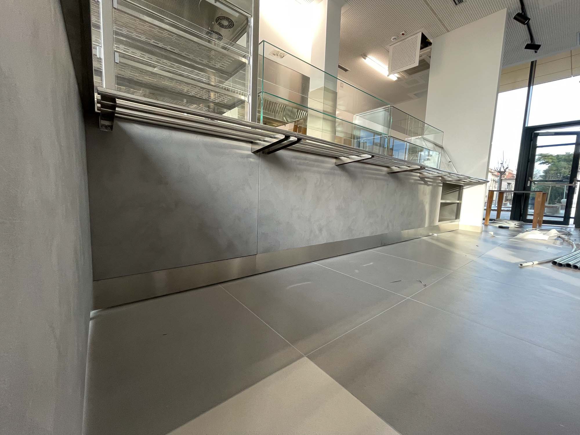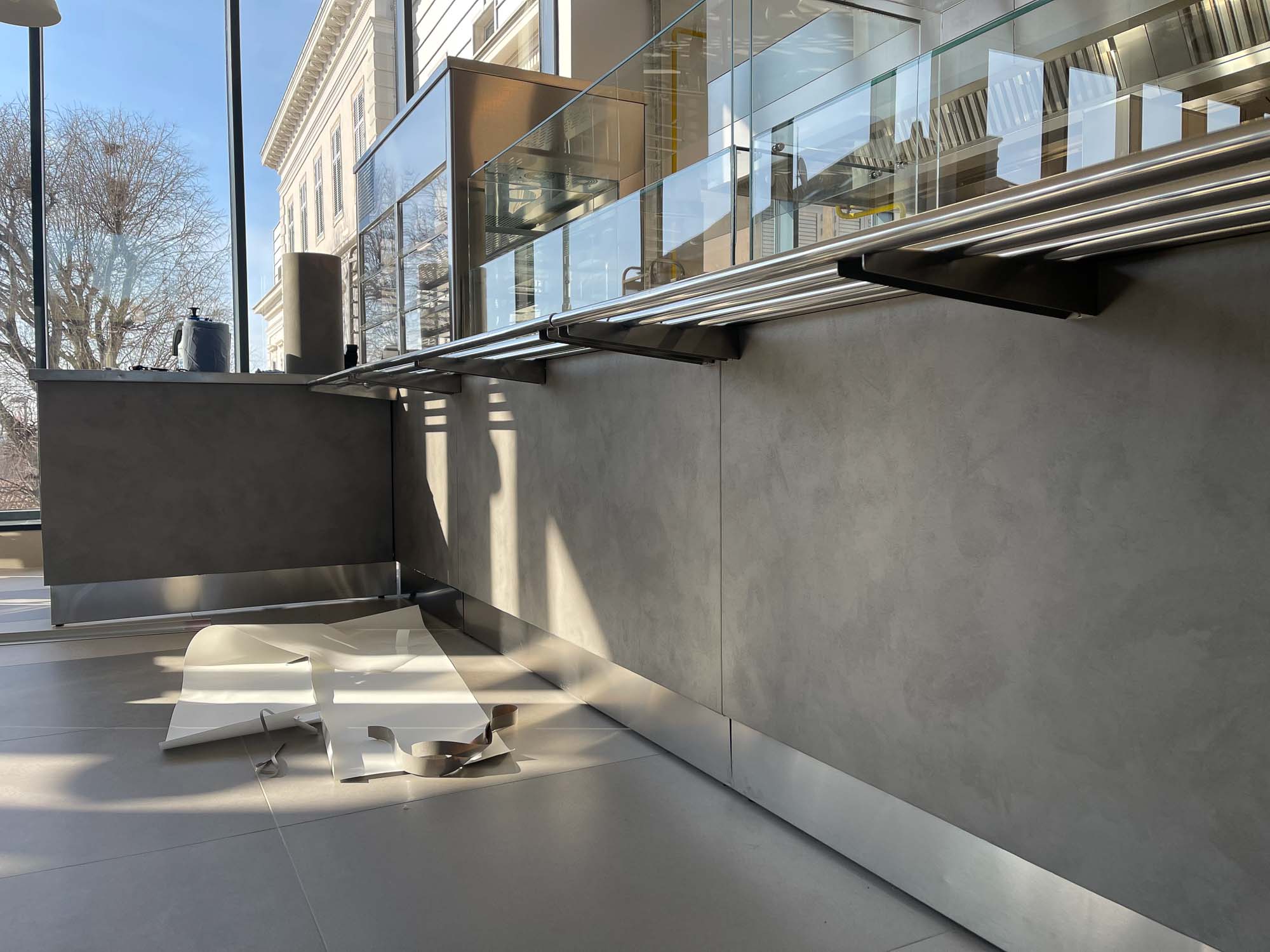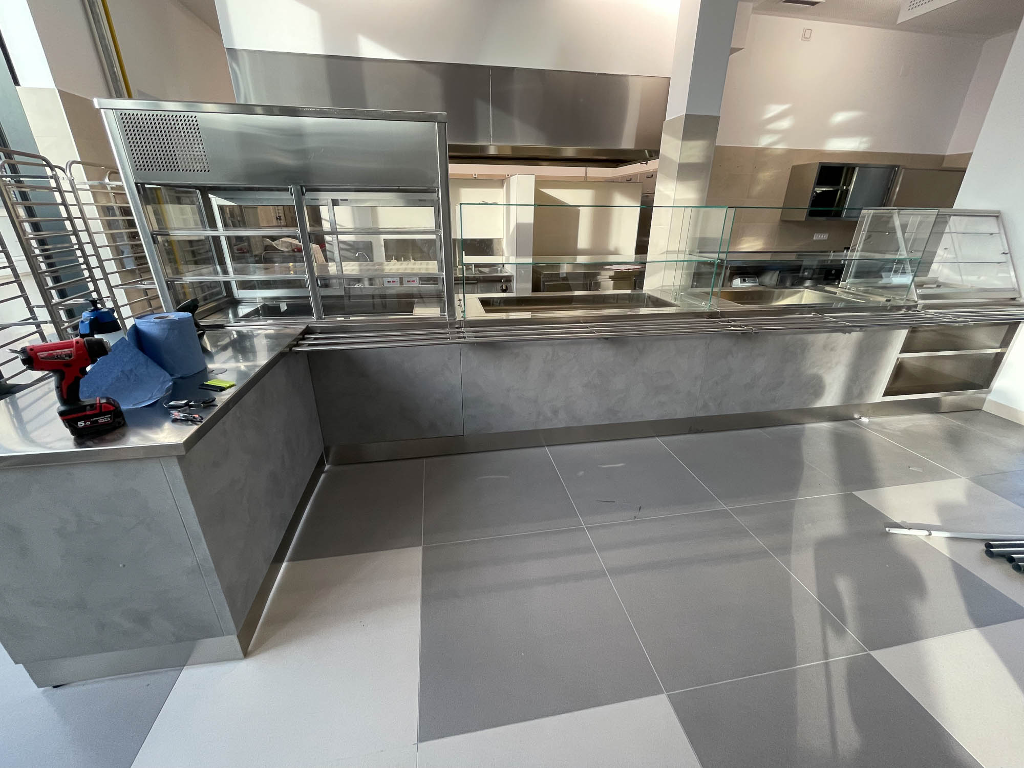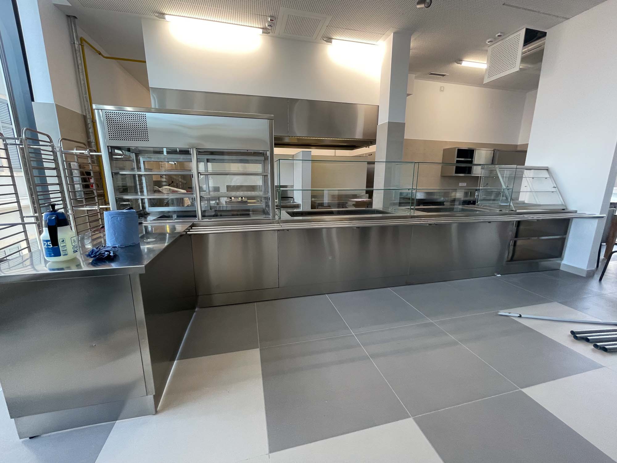 Za potrebe kantine faksa, oblijepili smo vanjske djelove kuhinje folijom za indoor elemente dezen / stone / Svaki element inox opreme morao je biti predhodno odmasten, ociscen I pripremljen za montazu. Izrezivanje folije I montaza bili su na licu mjesta kako bi se svi spojevi I elementi spojili kao cjelina.